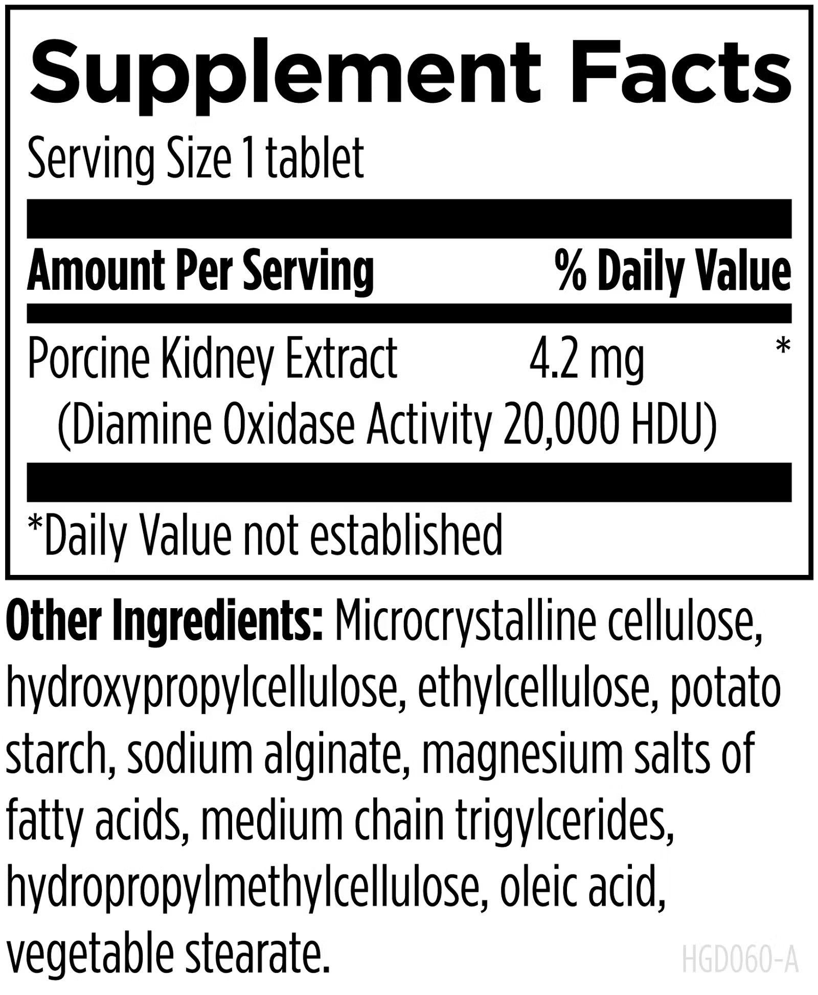 20,000 histamine‐degrading units of diamine oxidase (DAO) to support those with sensitivities to histamine-rich foods.*